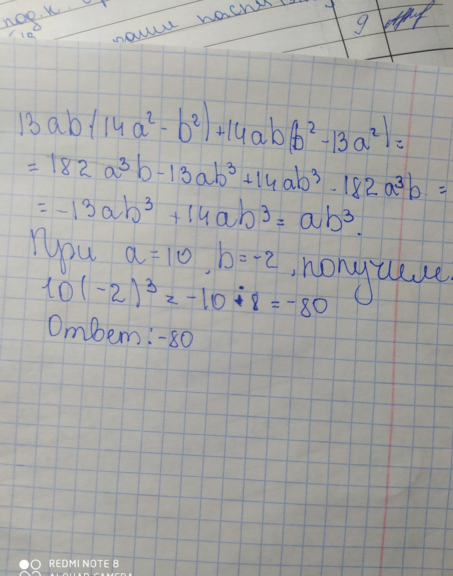 Объяснение 182a³b - 13ab³ + 14ab³ - 182a³b = ab³