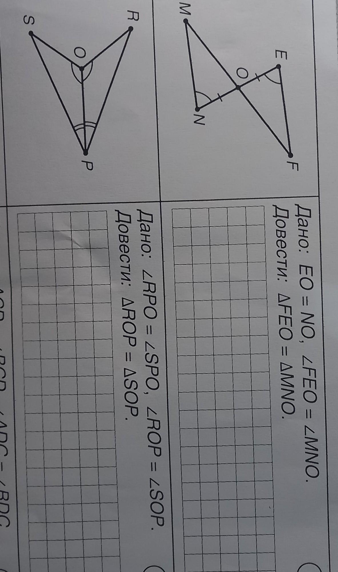 Вторые треугольники равны также по стороне и двум прилежащим углам (сторона OP– общая и равны соответствующие углы из дано)