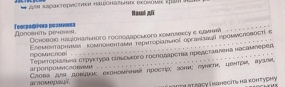 -Елементарними компонентами територіальної організації промисловості є промислові пункти, центри, вузли, агломерації, райони.