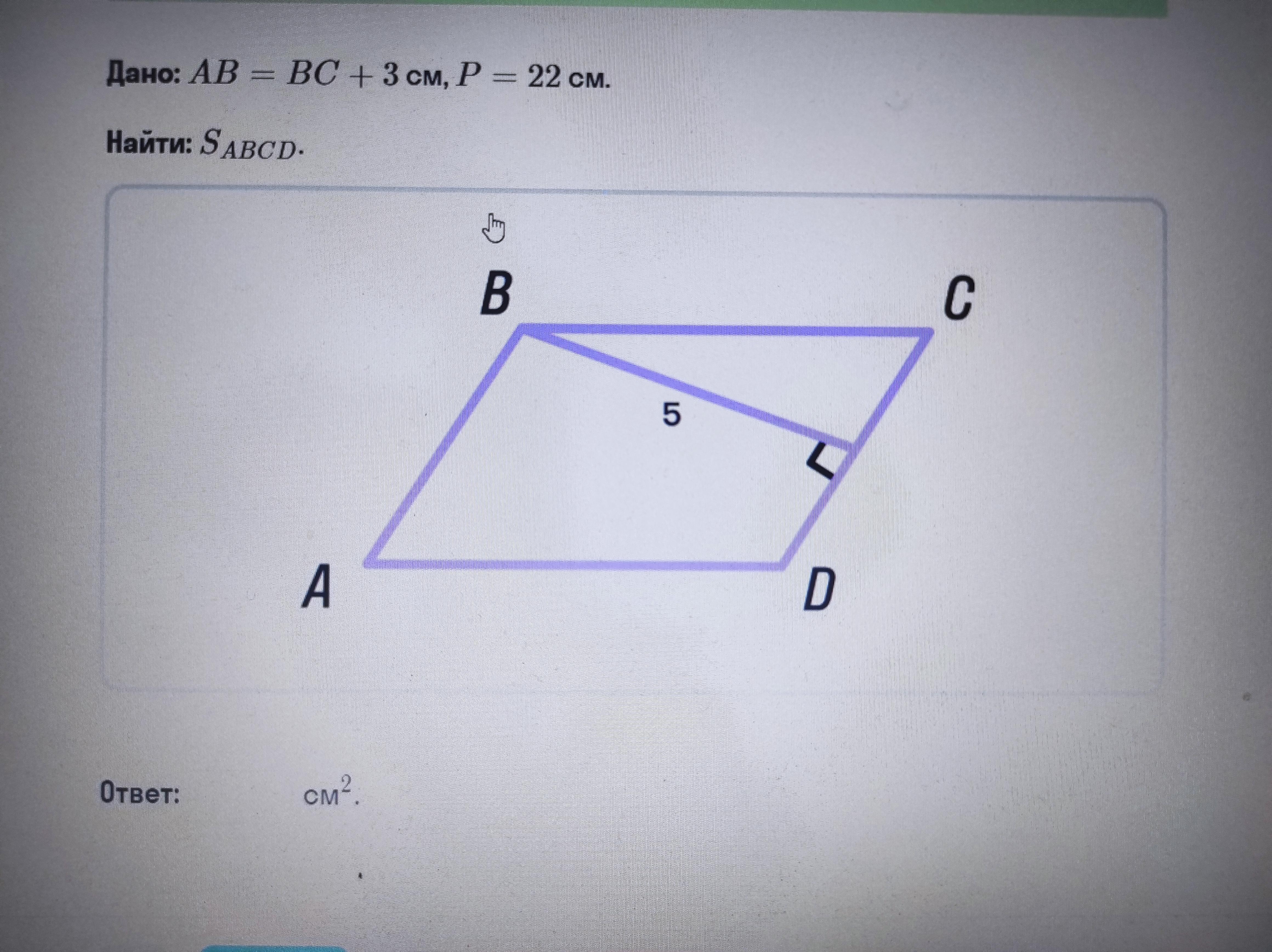 ВС=3+х Р=22см