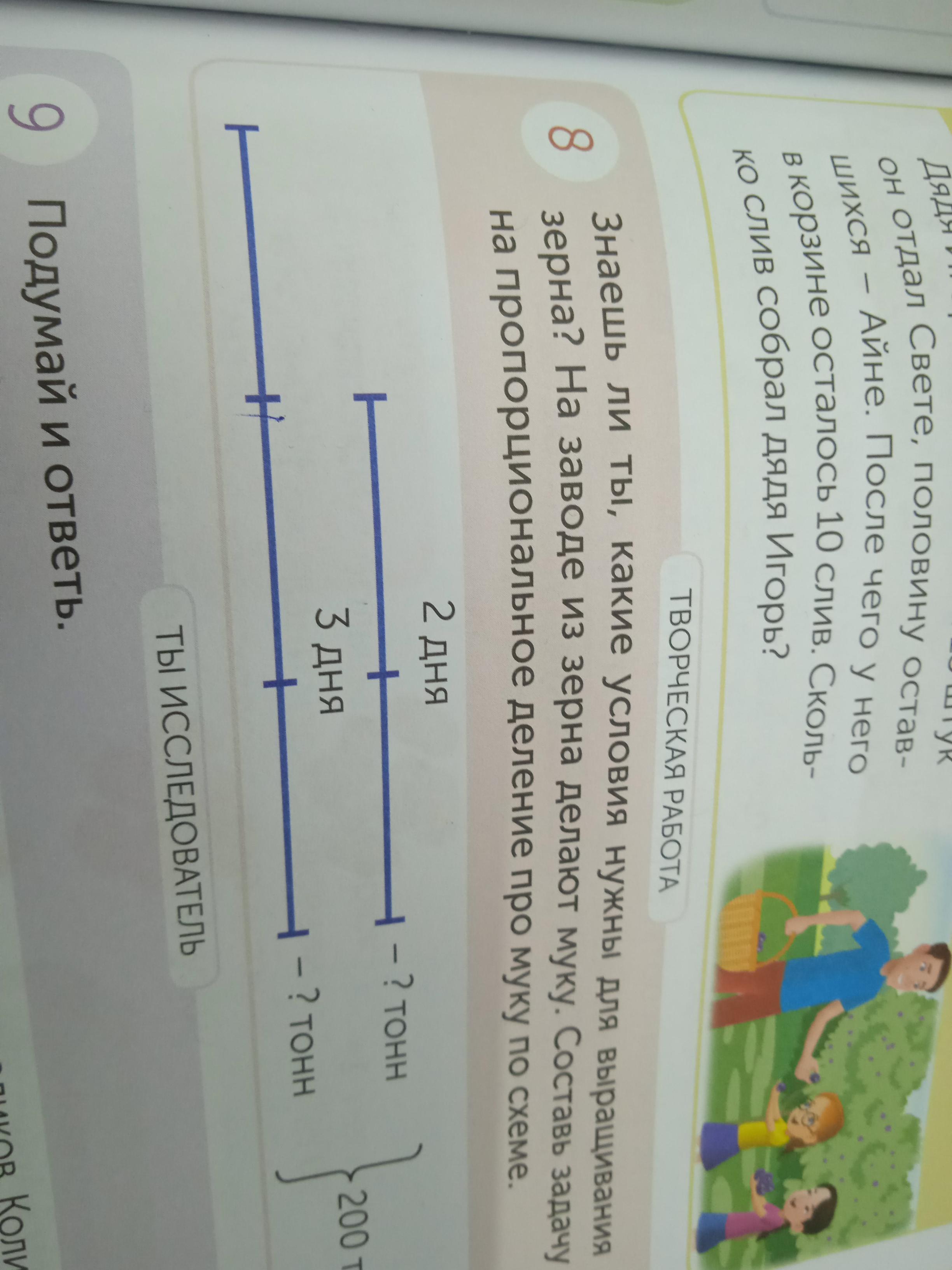 Знаешь ли ты, какие условия нужны для выращивания зерна? На заводе из зерна делают муку. Составь задачу на пропорциональное деление про муку по схеме.