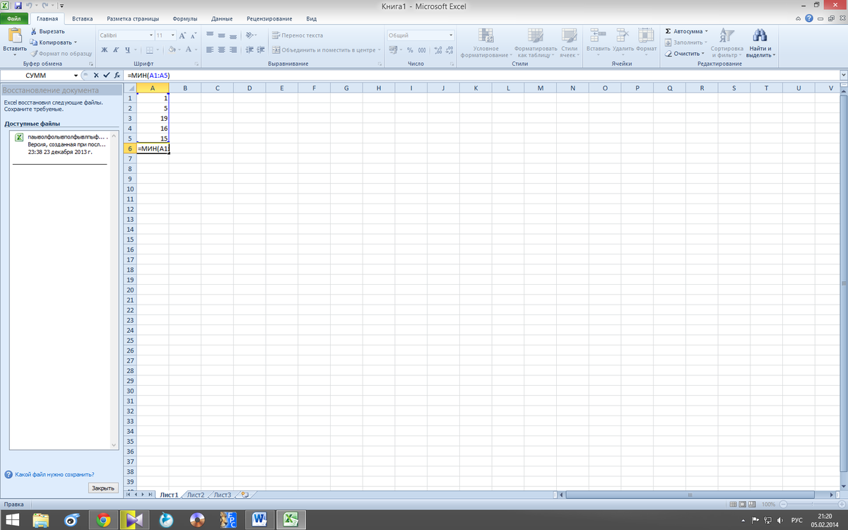 =Мин и выделяешь ячейки из которых тебе нужно выделить минимальное