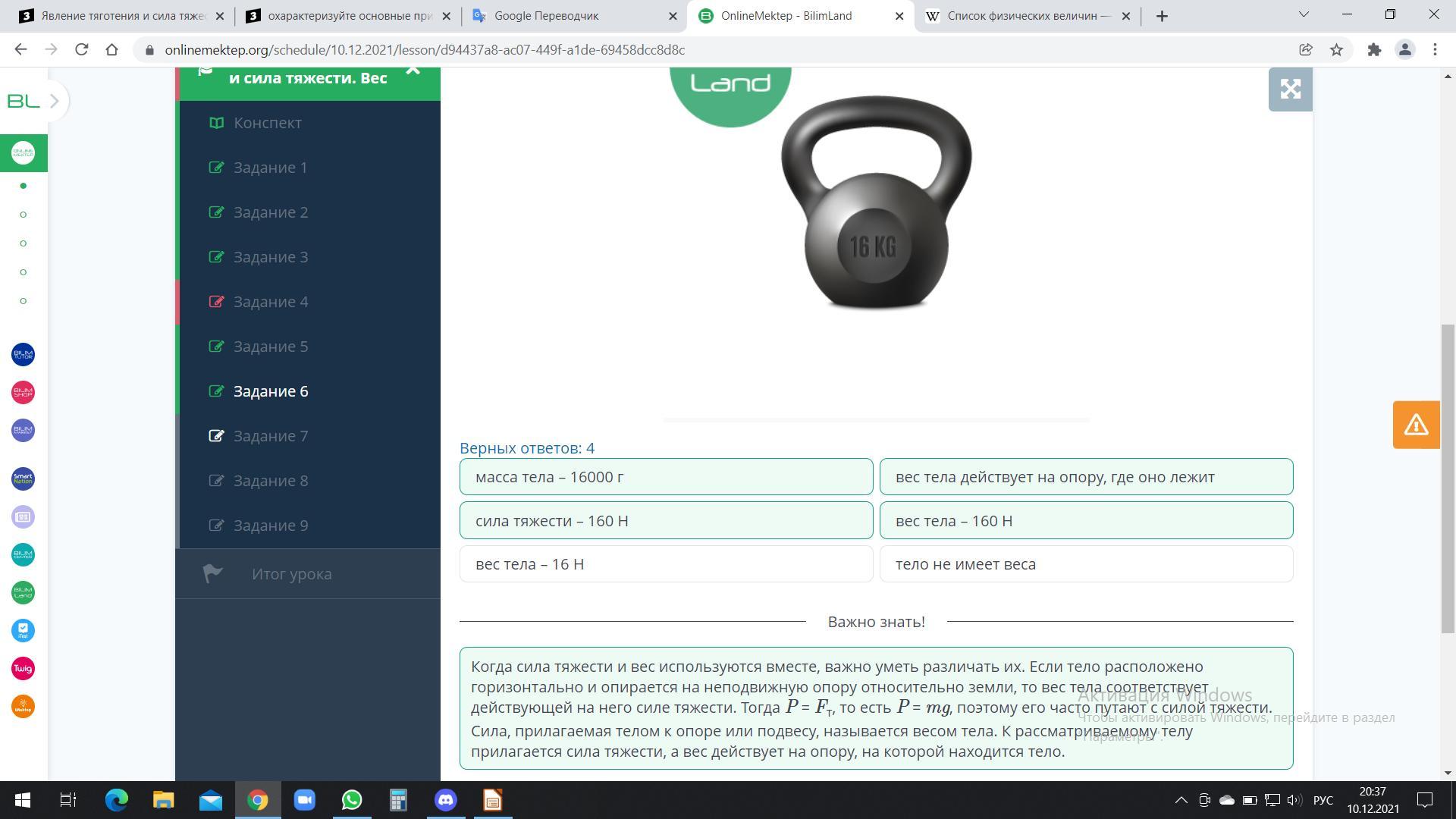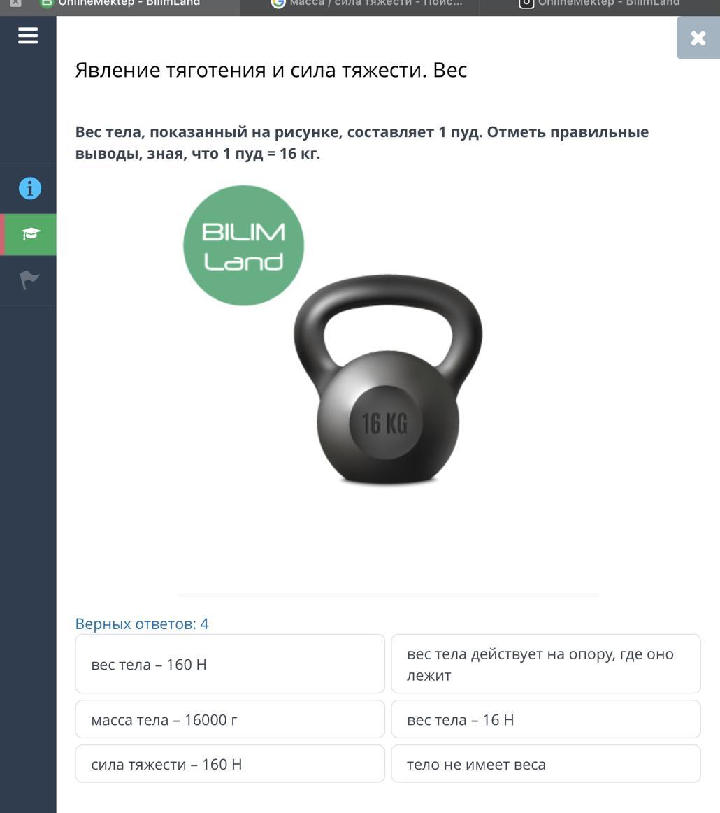 Вес тела, показанный на рисунке, составляет 1 пуд. Отметь правильные выводы, зная, что 1 пуд = 16 кг.