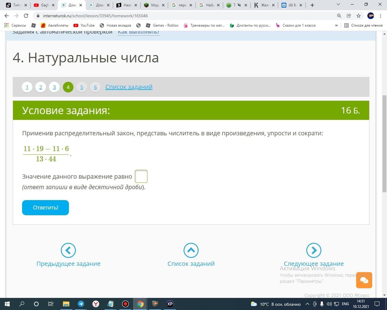 Применив распределительный закон, представь числитель в виде произведения, упрости и сократи: