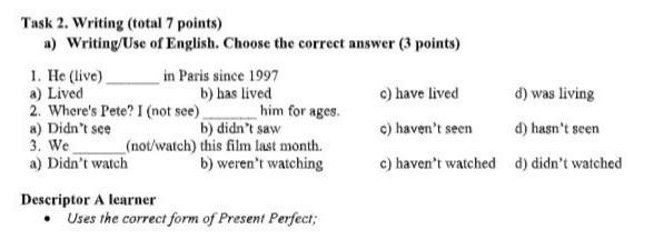 2. Where's Pete? I (c) haven't seen (not see) him for ages.