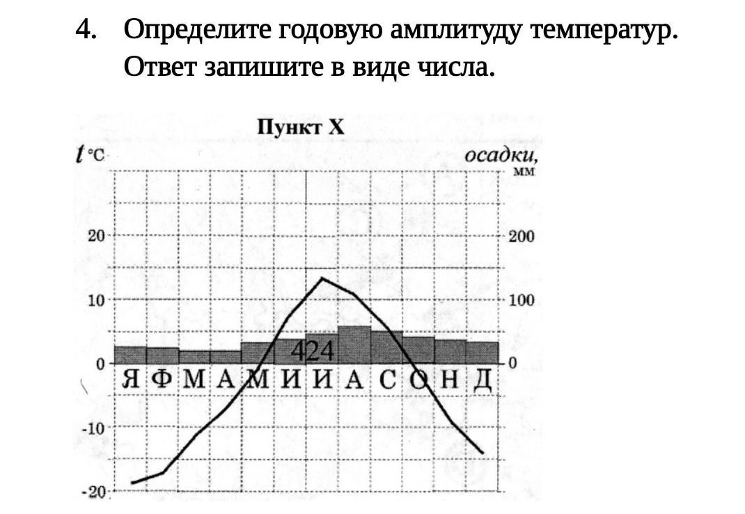Помогите пожалуйста. Определите годовую амплитуду температур. Ответ запишите в виде числа.