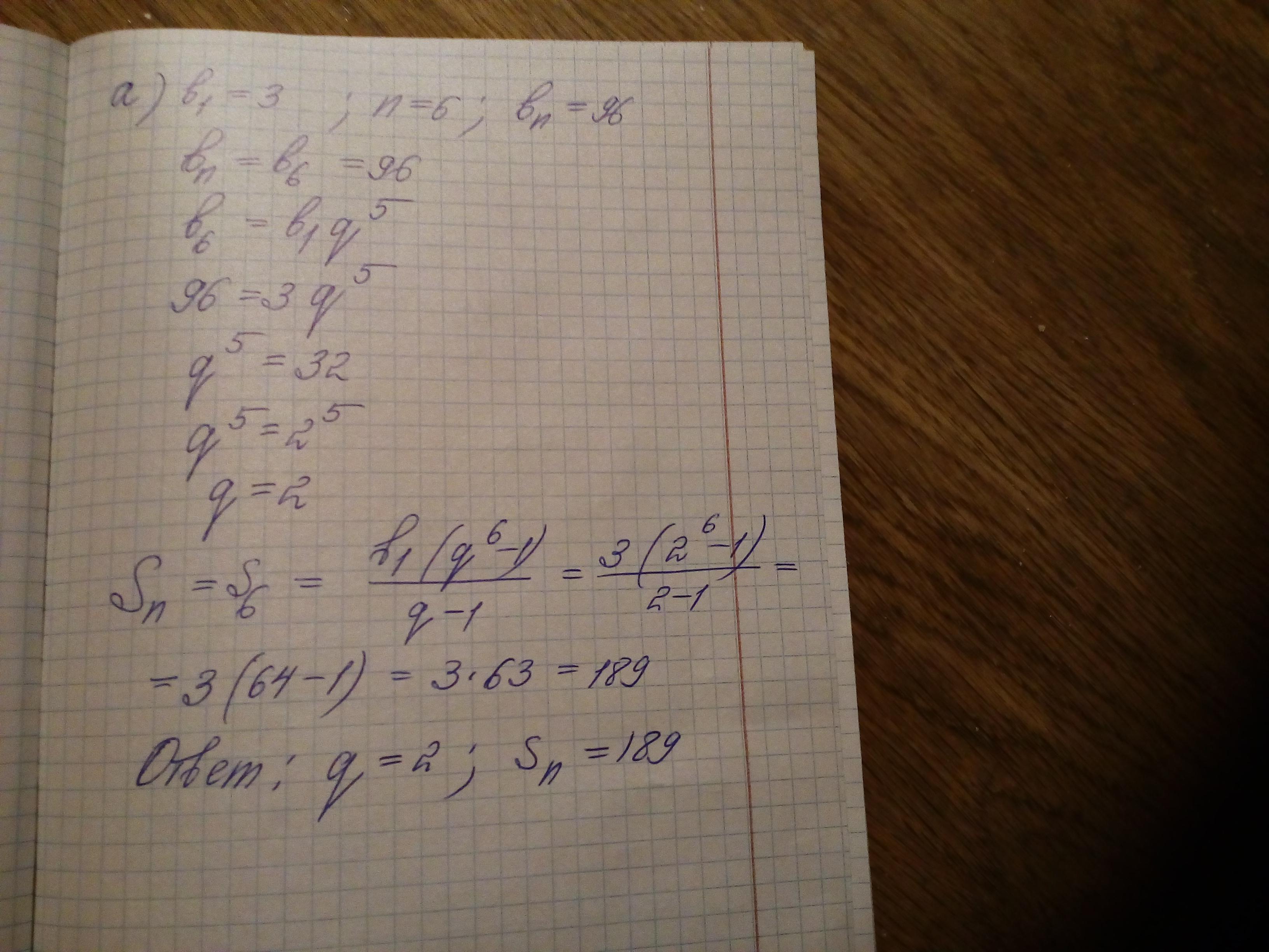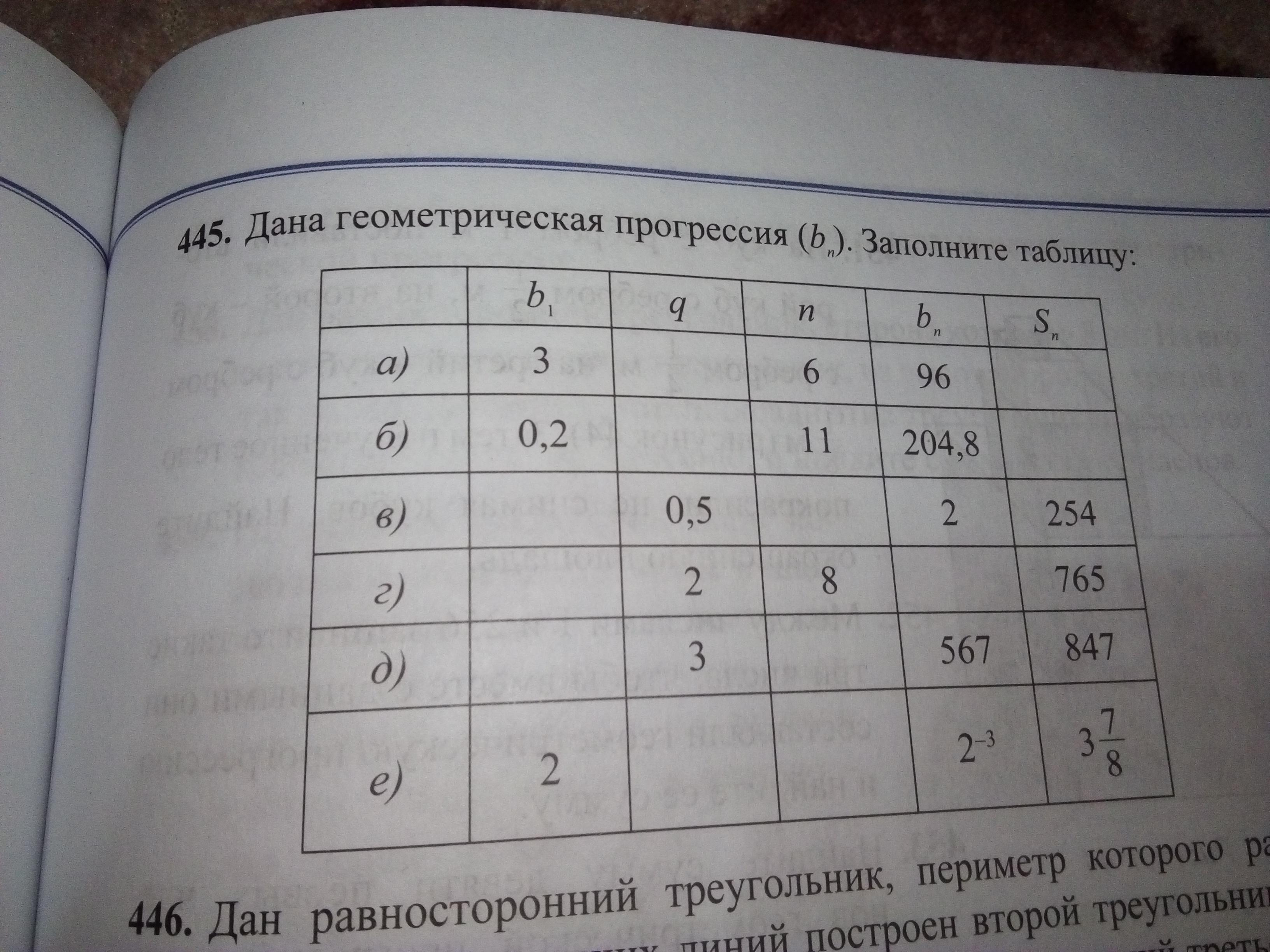 Дана геометрическая прогрессия (bn), заполните таблицу.