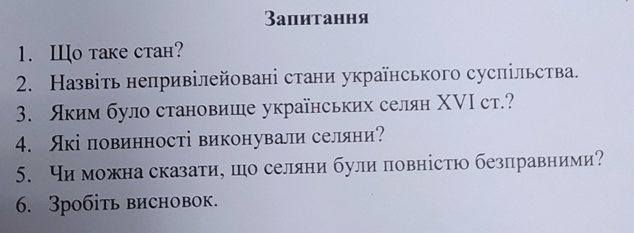 3)Майже 80% населення України становили селяни, які були по суті повністю безправними. До середини XVI ст. в Україні остаточно встановлюється кріпосне право. Феодали позбавляють селян їхніх громадянських прав.