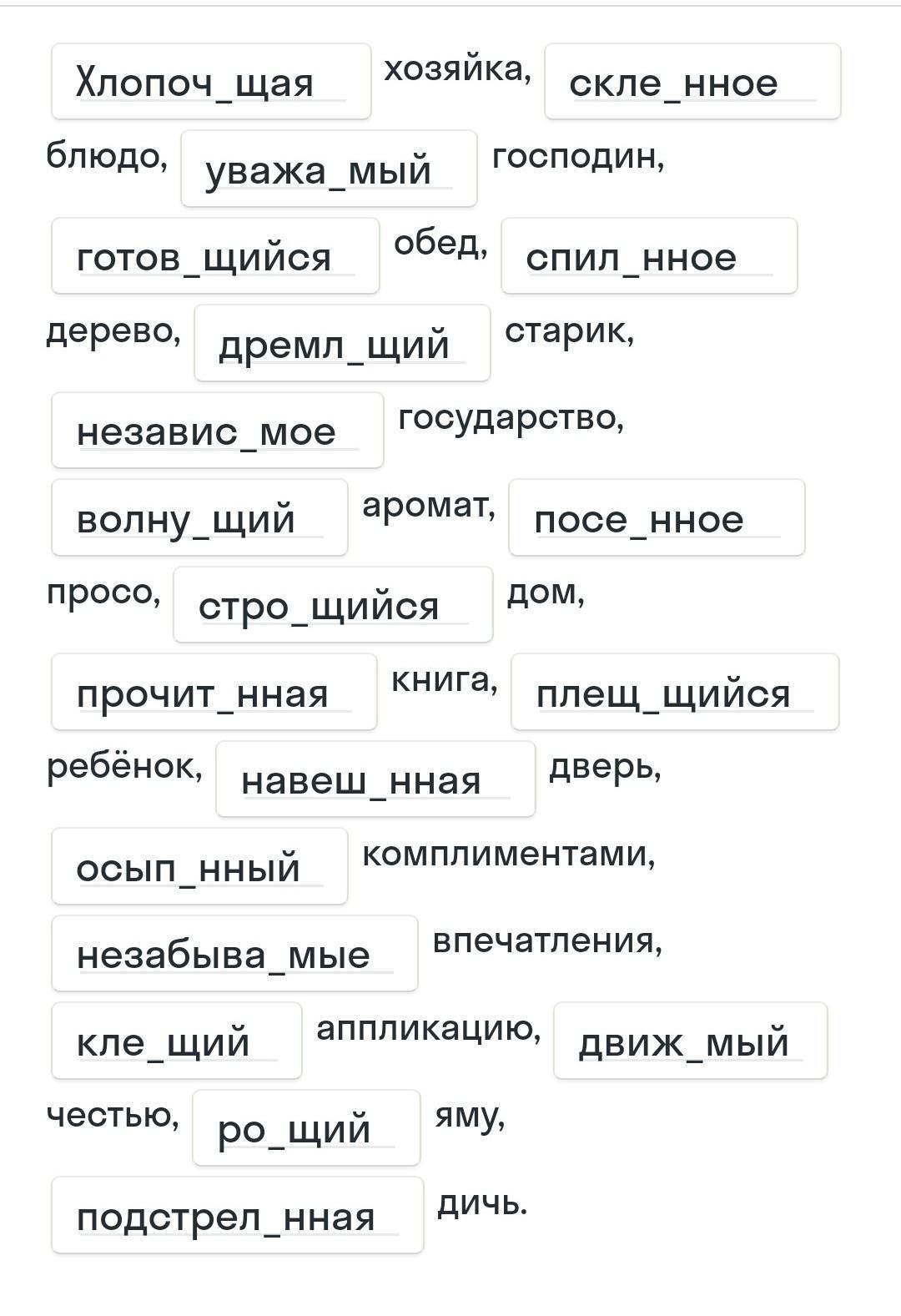 хлопочущая, склеенное, уважаемый, готовящийся, спиленное, дремлющий, независимое, волнующий, посеянное, строящийся, прочитанная, плещущийся, навешенная, осыпанный, незабываемые, клеящий, движимый, роющий, подстреленная