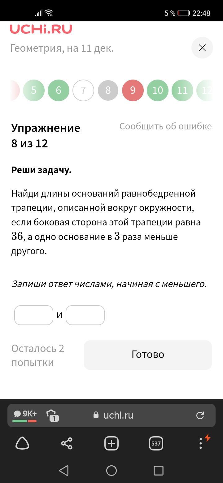 Если четырехугольник описан вокруг окружности, то сумма его противоположных сторон равна.