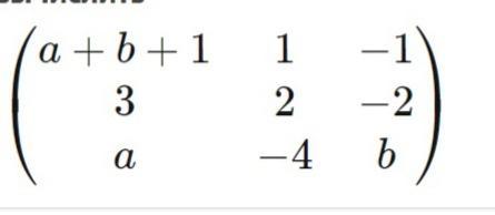 Найти определитель матрицы. У меня получилось 4 (а+в+1)+12-3в, но думаю это неправильно. Помогите решить, матрица в картинке, но напишу еще тут если не видно.