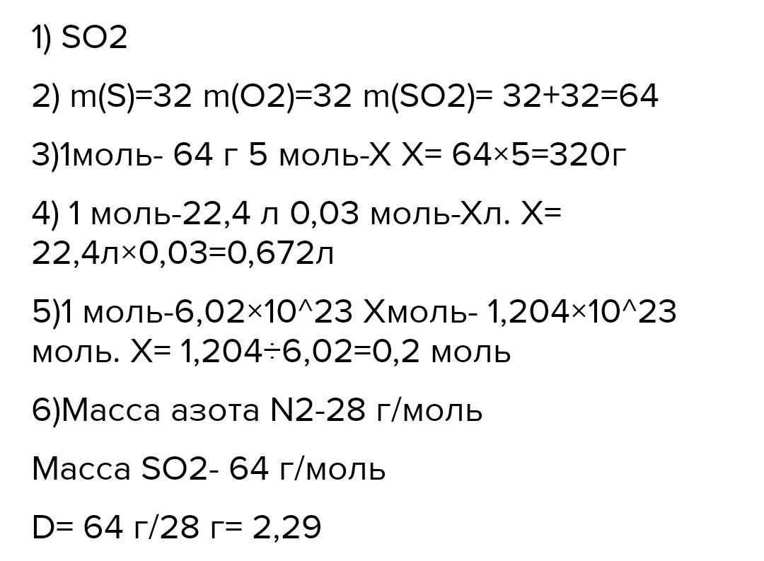 вот это ответ, в 5) 0,2 моль, а в 6) D= 2,29