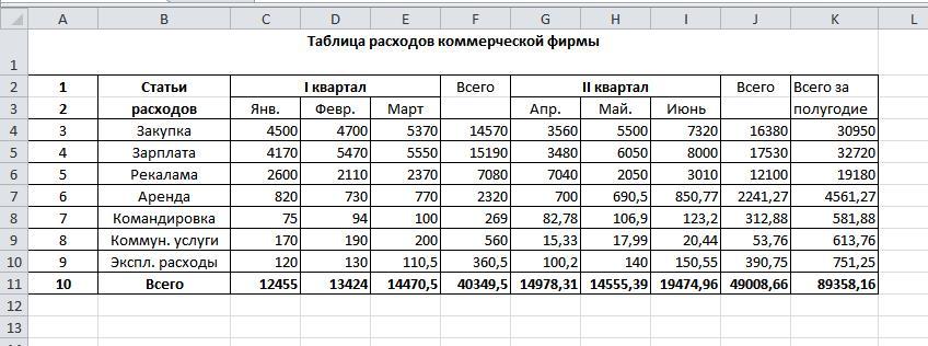 Не очень понятно что требовалось, но в приложенном файле таблица в Excel.