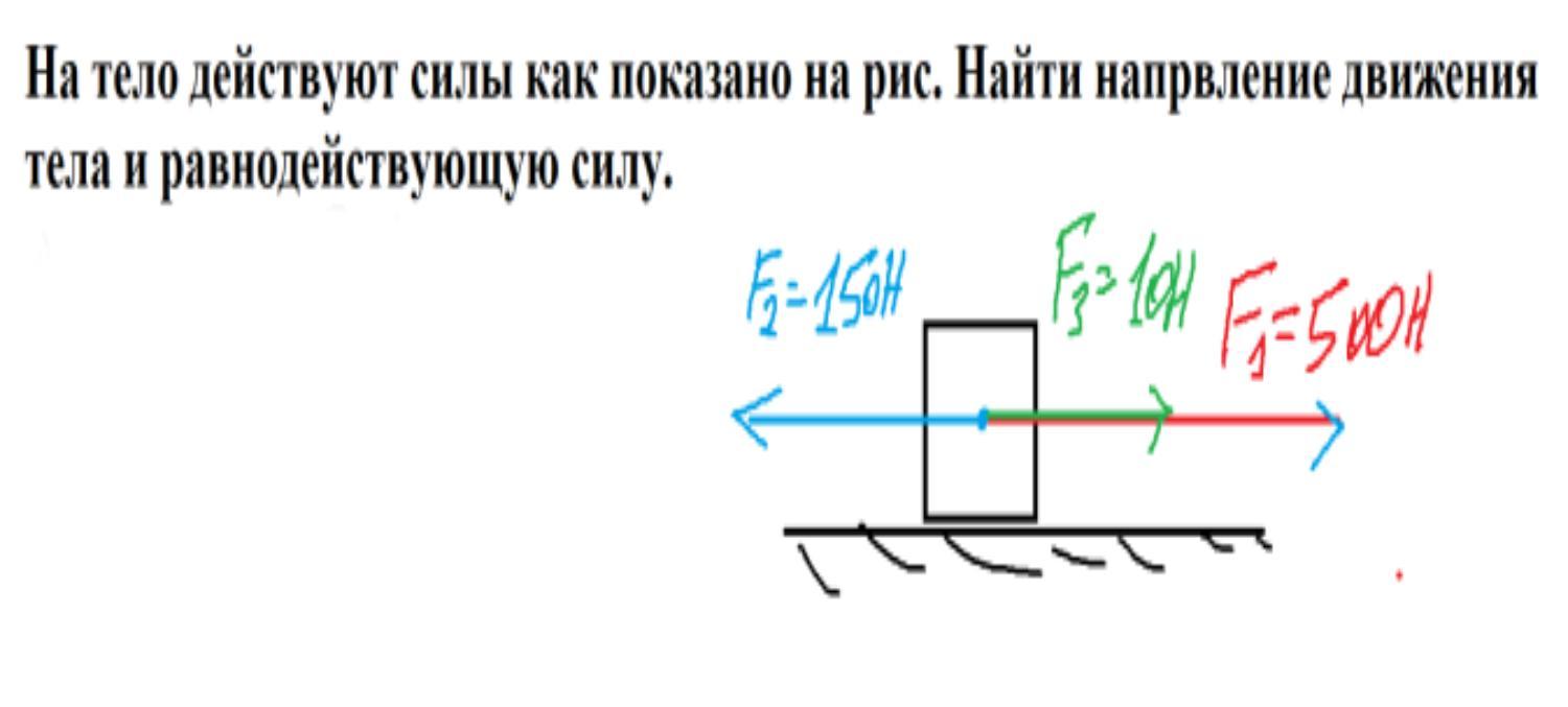 На тело действуют силы как показано на рис. Найдите направление движения тела и равнодействующую силу.