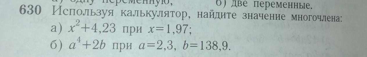 пусть a=2,3; b=138,9, тогда 2,3⁴+2•138,9=(2,3•,2,3•2,3•2,3)+(2•138,9)=27,9841+277,8=305,7841