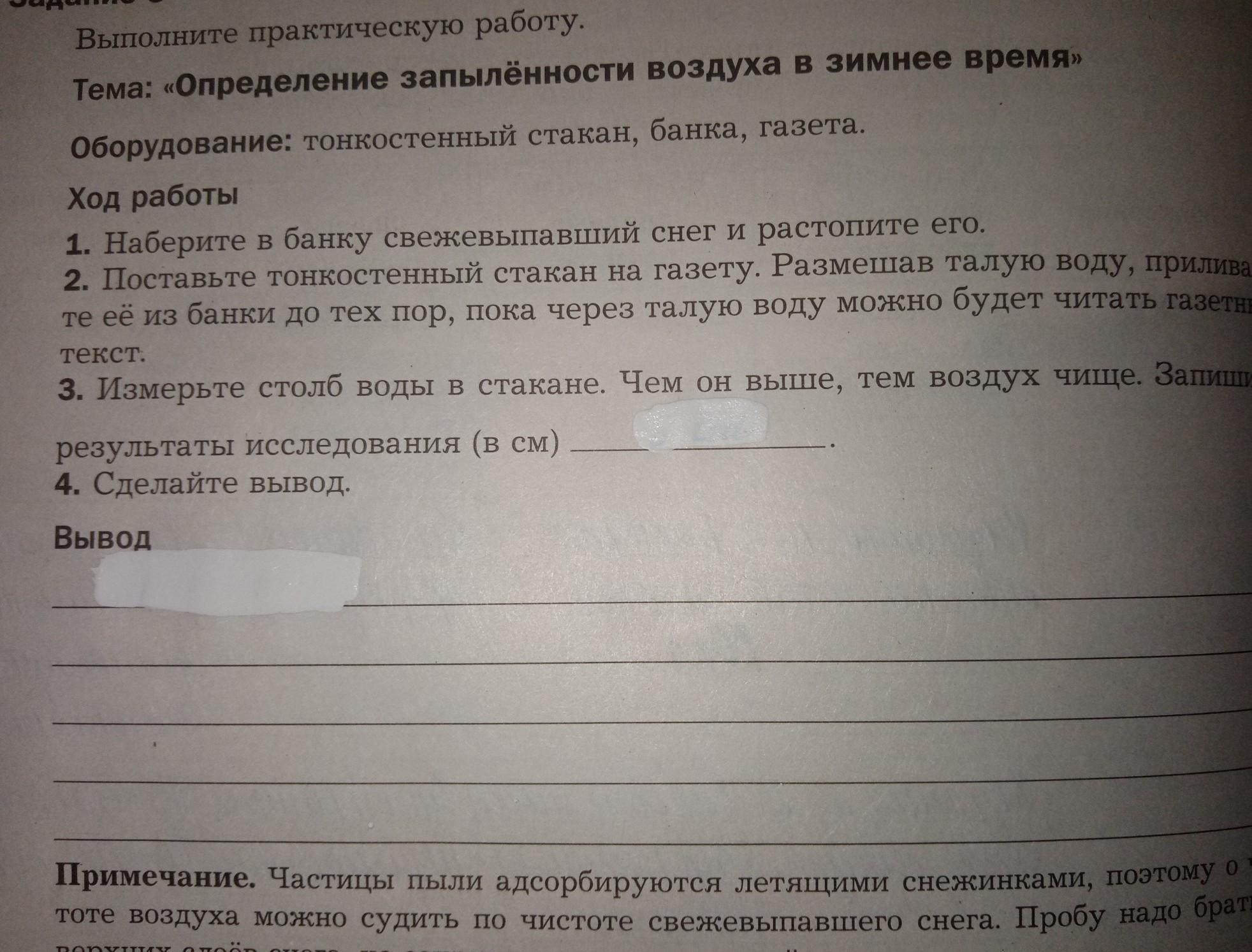 Налейте такой же объем талой воды в стакан. Прочитайте текст газеты. Если текст, газеты не читается, то уменьшайте объем воды в стакане до тех пор пока тест газеты не будет читаем. Измерьте уровень высоты жидкости в стакане.