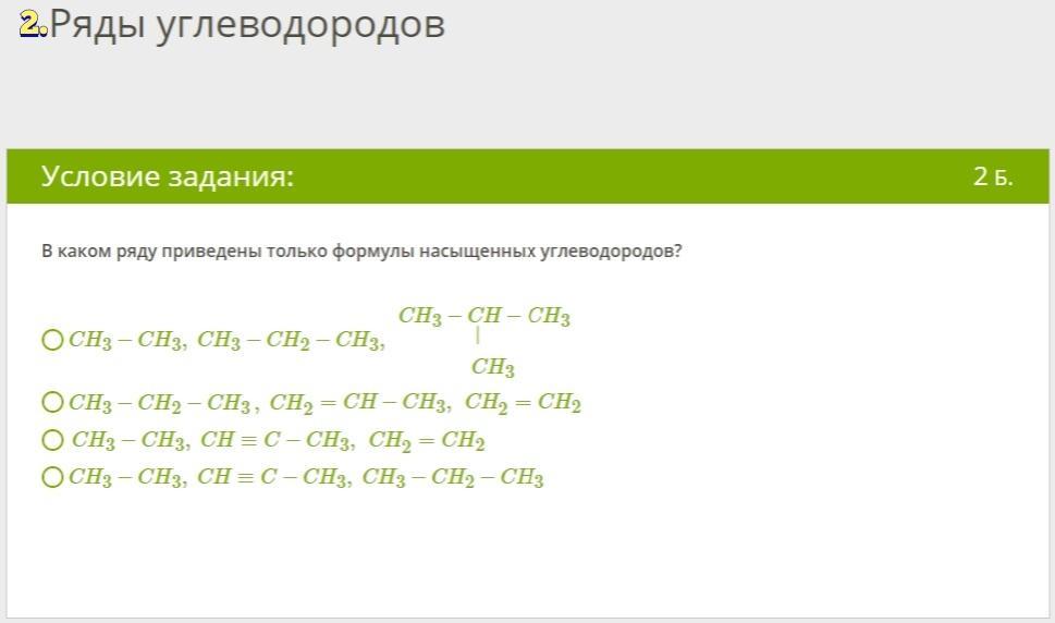 1. Выбери формулу вещества, в молекуле которого есть атомы углерода с sp-гибридными орбиталями: