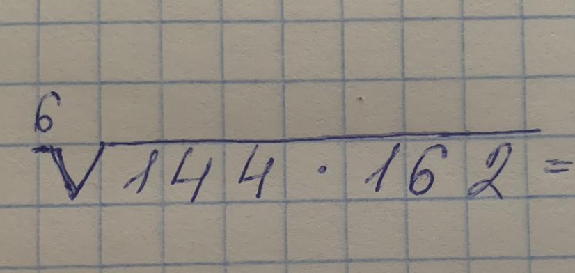 \sqrt[6]{144 \times 162}  =  \sqrt[6]{23328}  = 3  \sqrt[6]{32}