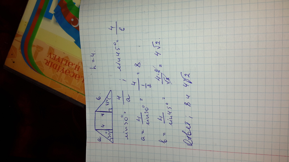 Высота трапеции 4см, а углы при большом основании 30градусов и 45градусов.Найдите боковые стороны