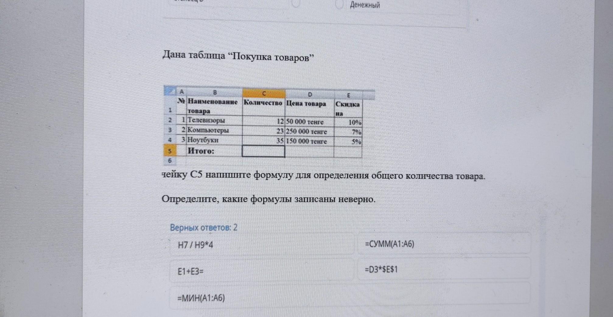 ячейку С5 напишите формулу для определения общего количества товара.