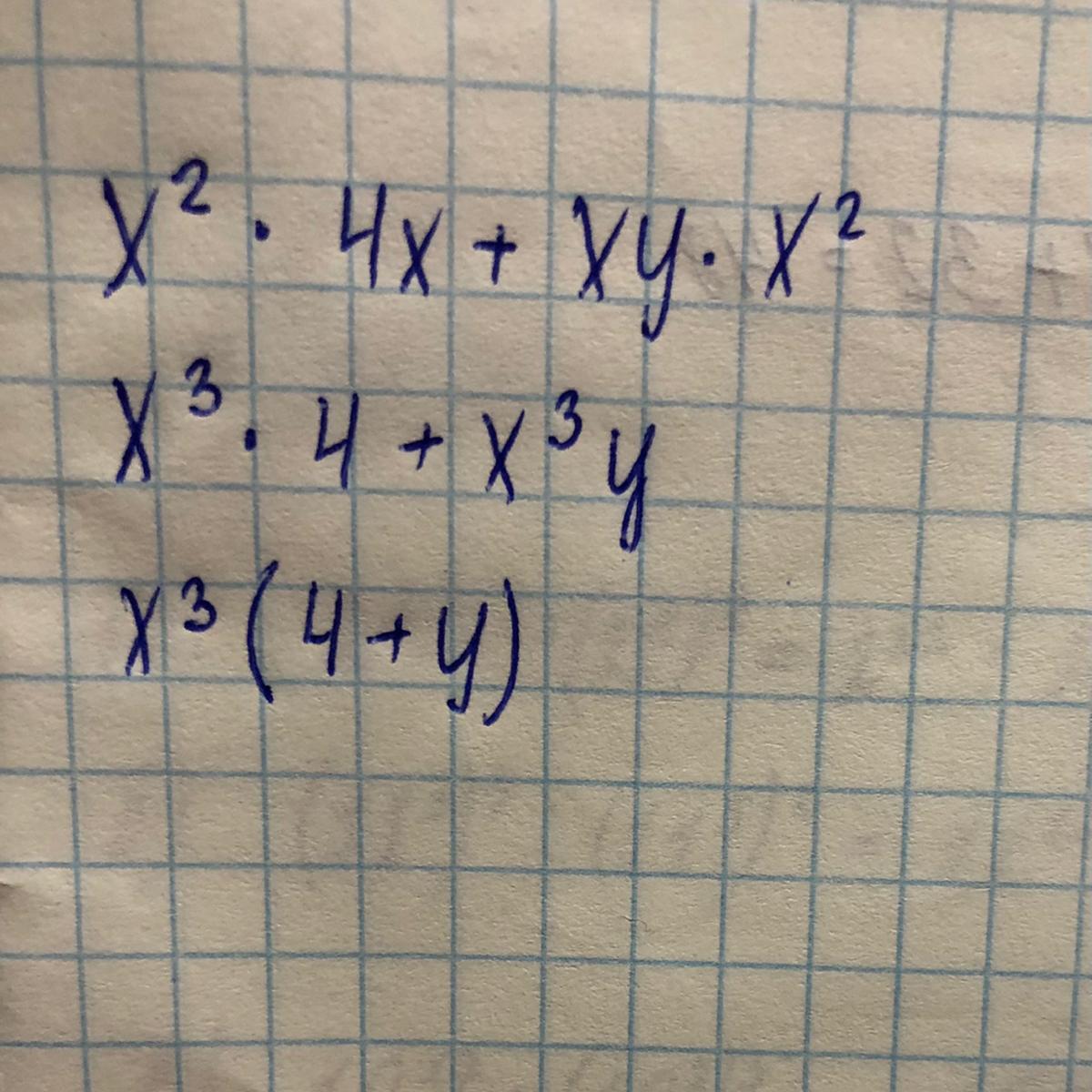 x^2*4x + xy*x^2 = 4x^3 + yx^3 = x^3(4+y)