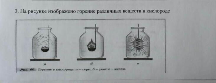 На рисунке изображена горение различных веществ в кислороде будут ли данные вещества гореть на воздухе?объясните