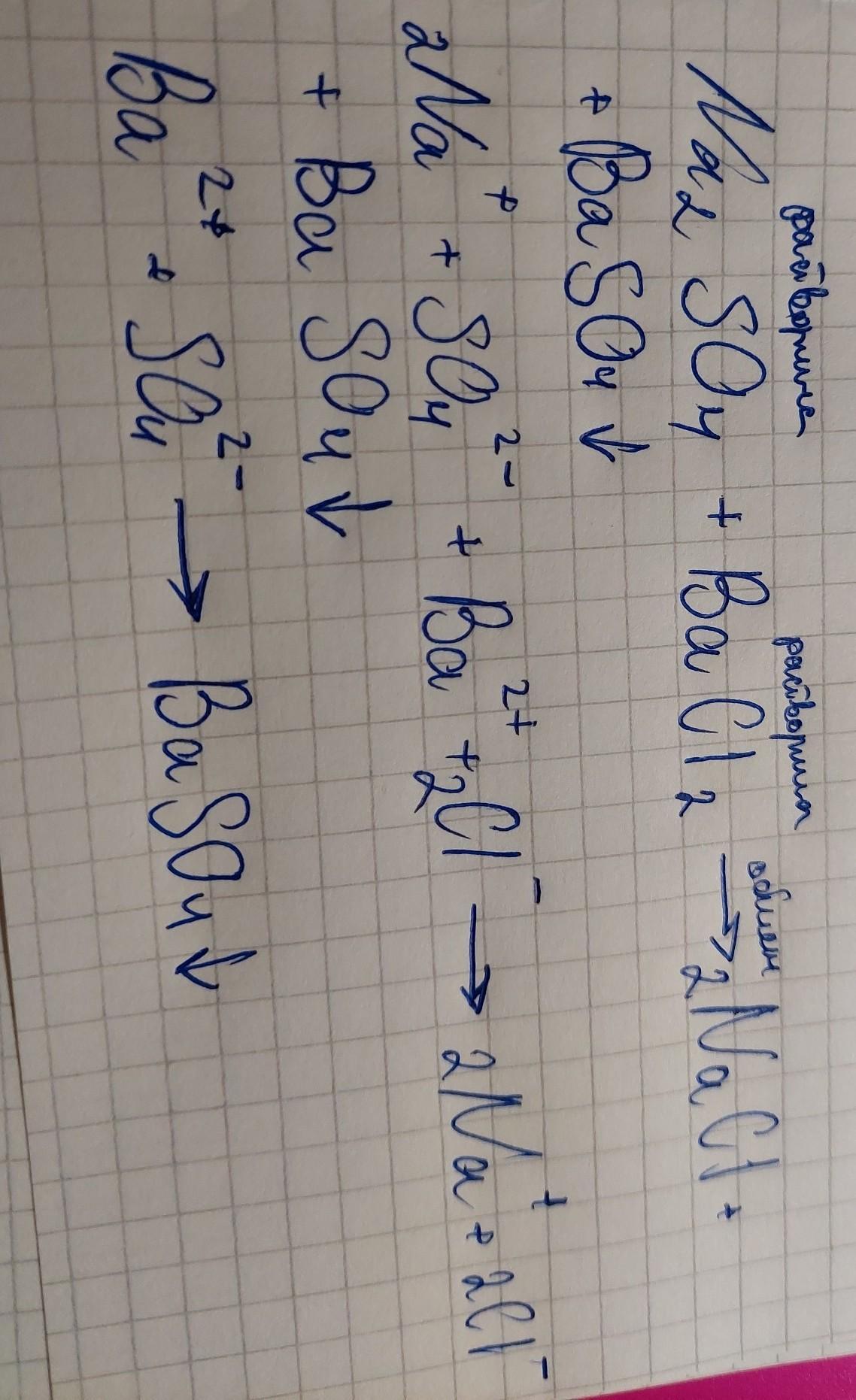у пробірку налийте 1 мл розчину натрій сульфату і обережно додайте розчин барій хлориду запишіть молекулярне та іонне рiвняння даної реакції.