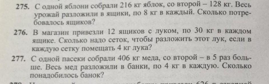Если говорится что с 1 яблони собрали 216 кг а со 2 яблони 128 и разложили в ящики по 8 кг в 1 ящик то есть надо: