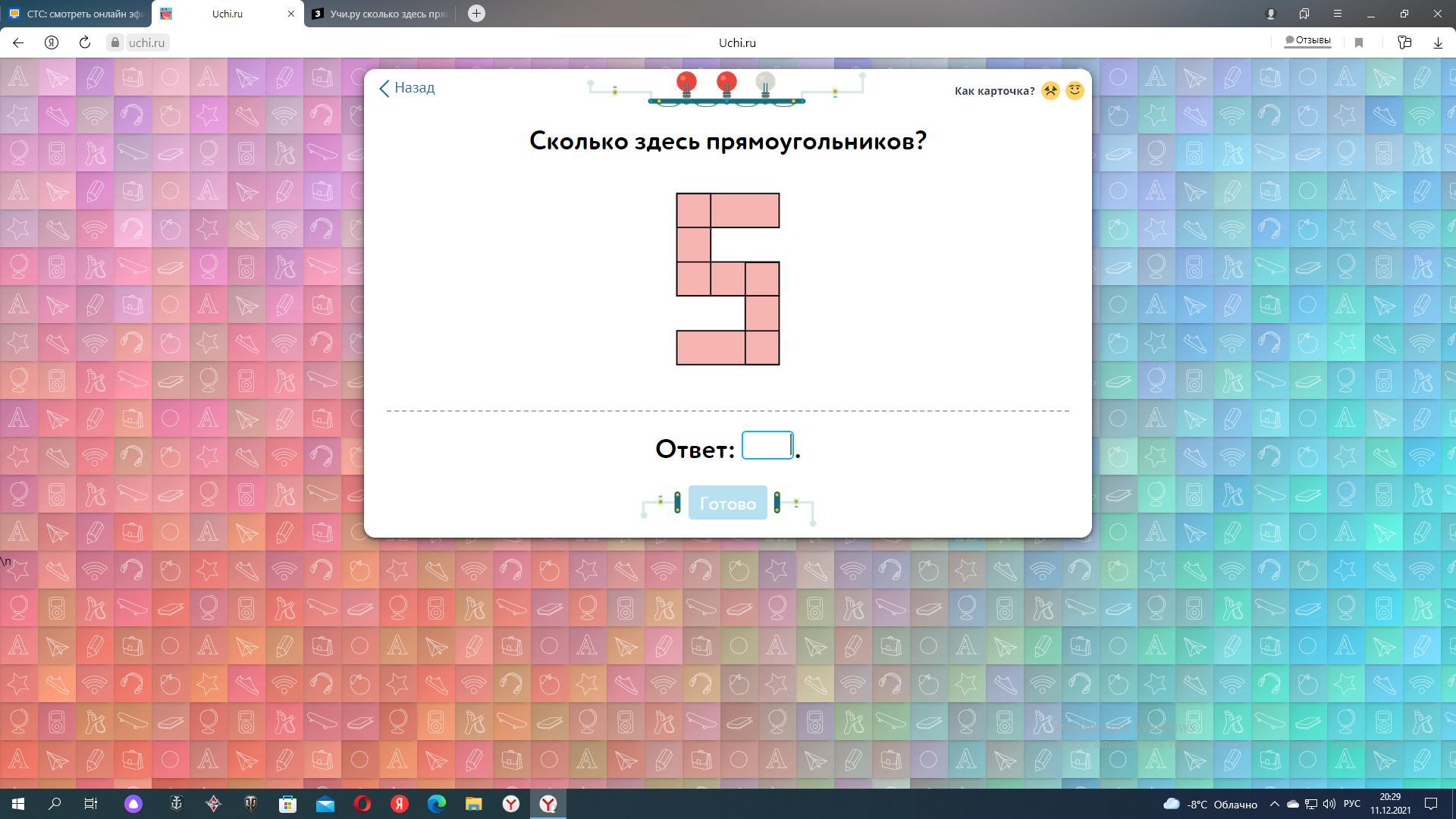 считаем: 2+7+6+3+2= 20 20 прямоугольников