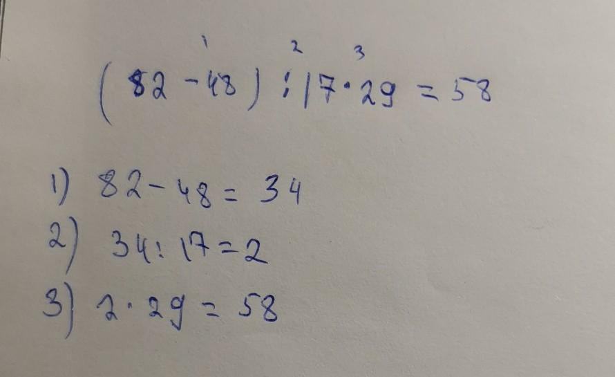 сначала дужки там выходит 34 потом делишь на 17 выходит 2 и множешь выходит 58
