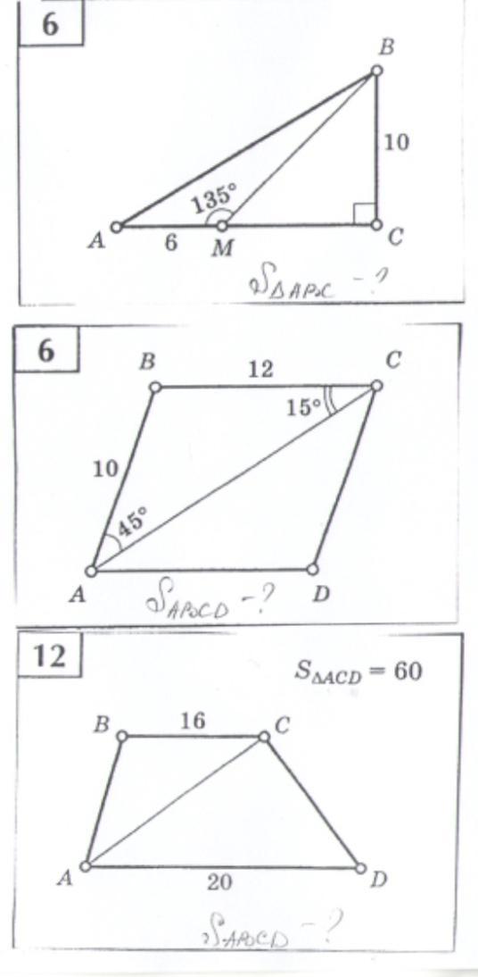 Вобщем угол АМВ решим так,135÷6=22.5 это сторона АВ.Ну так вот найдём МС,так от 22.5-10=12.5.Находим площадь,мы складываем все стороны,т.е. 6 22.5 12.5 10=41.А теперь найдём МВ 10 6=16.Итак находим площадь 41 16=57
