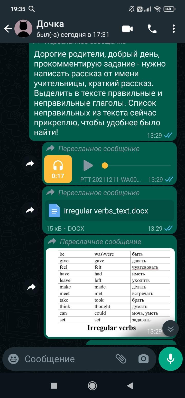 это таблица с переводам из первой формы глагола во вторую