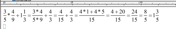 короче, после твоего условия получается 12/45+4/3, дальше делаем знаминатели одинаковыми , следовательно получается 1245 + 60/45= 72/45