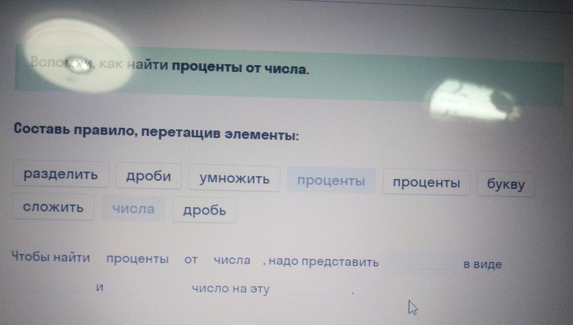 Что бы найти проценты от числа, надо представить проценты в виде дроби и разделить на эту дробь.