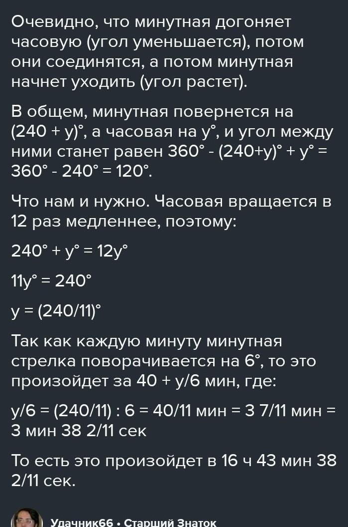В какой первый момент времени, после 16:00 расстояние между концами стрелок будет таким же?