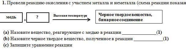 1. Провели реакцию окисления с участием металла и неметалла (схема реакции показана)