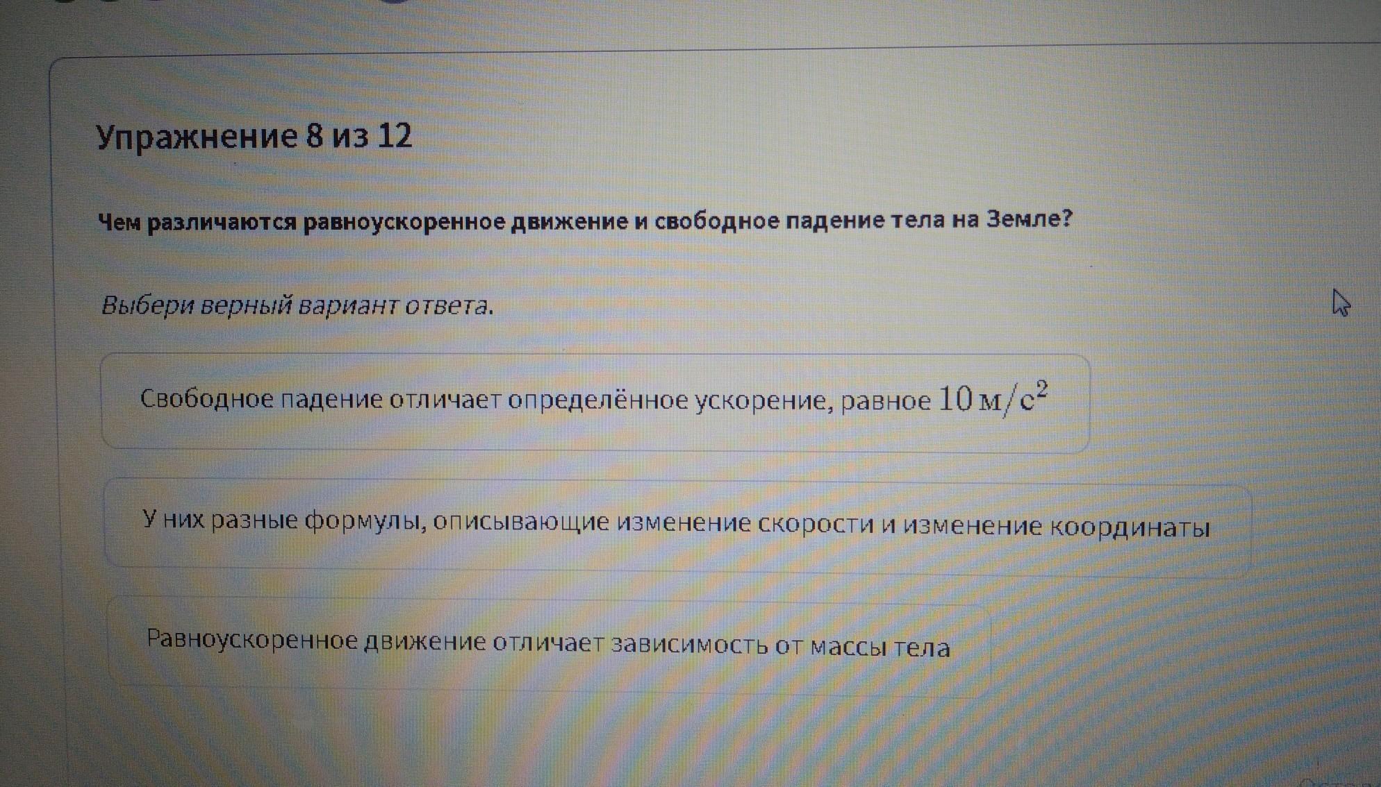 будет первое т.к свободное падение всегда 9.8 округляем до 10