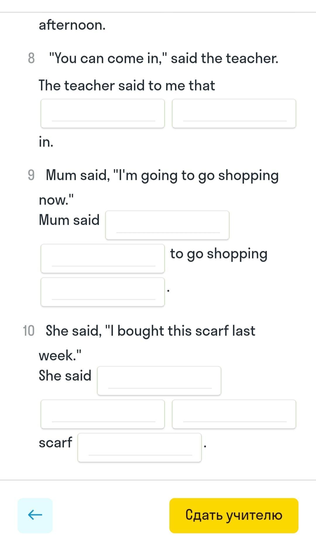 Объяснение:Там где пропуски -допишите свои предложения из примера. Это- косвенная речь. На время назад. А слова today, last week и другие меняются согласно правилам.