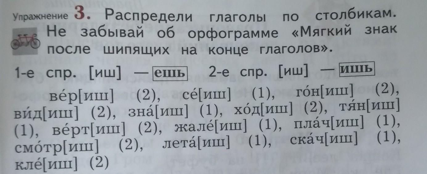 Распредели глаголы по столбикам. Не забывай об орфаграмме "Мягкий знак после шипящих на конце глаголов"