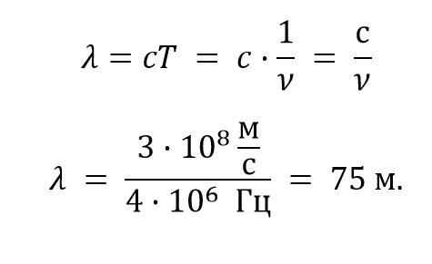 Радиостанция работает на частоте 4 МГц. Чему равна длина волны, излучаемой антенной радиостанции?
