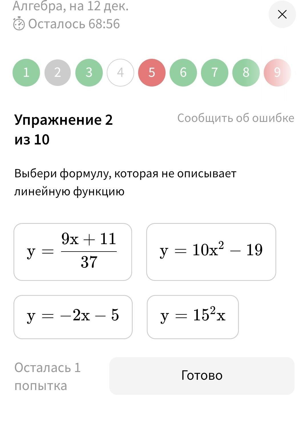 вторая ( обведена в кружок на фото),потому что х², а во всех остальных х в первой степени!