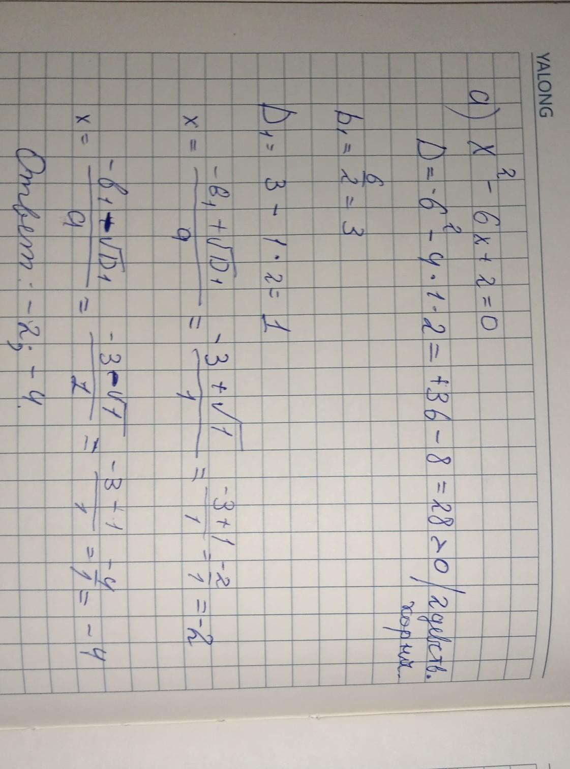 a) x ^ 2 - 6x + 2 = 0