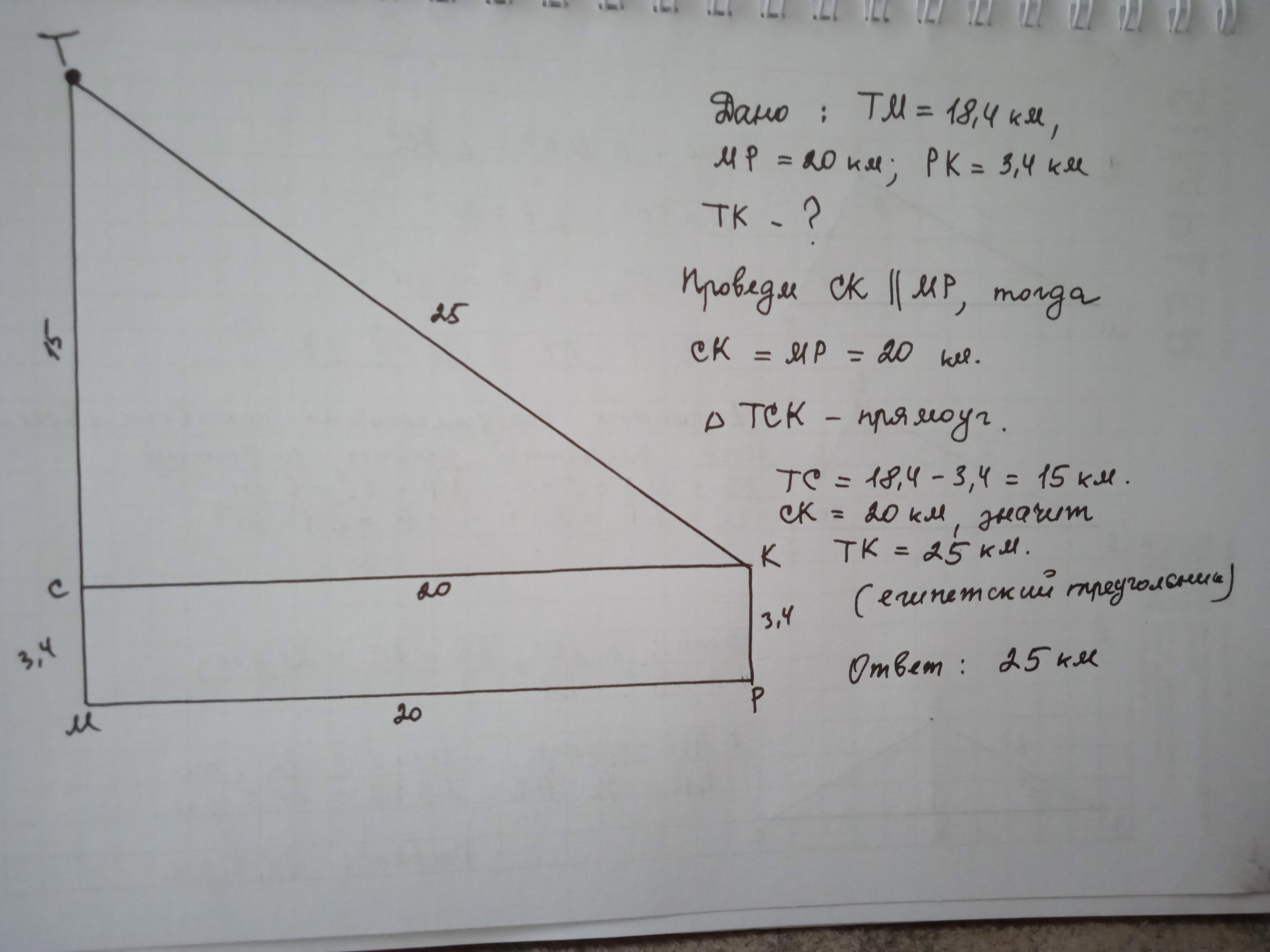 Яхта на соревнованиях плыла по морю 18,4 км на юг, 20 км на восток и 3,4 км на север.вычисли на каком расстоянии от места старта находится яхта?