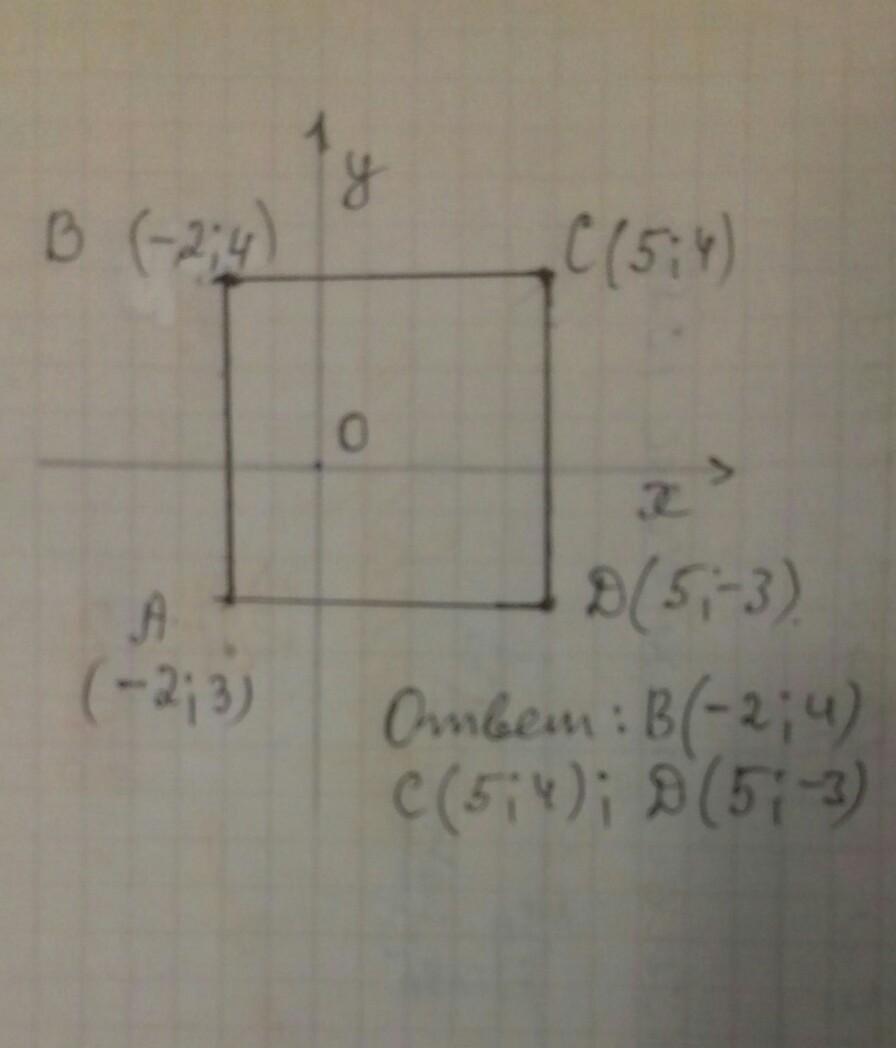 Вершины квадрата: В(-2;-4), С(5;-4), D(5;3)
