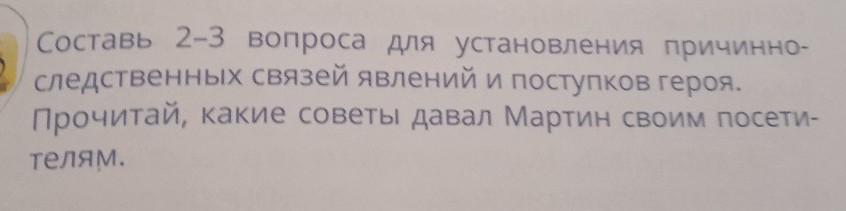 та СТОЛИ свой рабочий сті Составь 2-3 вопроса для чудесный. парикмахер установления причинно- следственных связей явлений и поступков героя. Прочитай, какие советы давал Мартин своим посети- телям. й текст, Определи основную мысль. Подумай, пъм счастье.