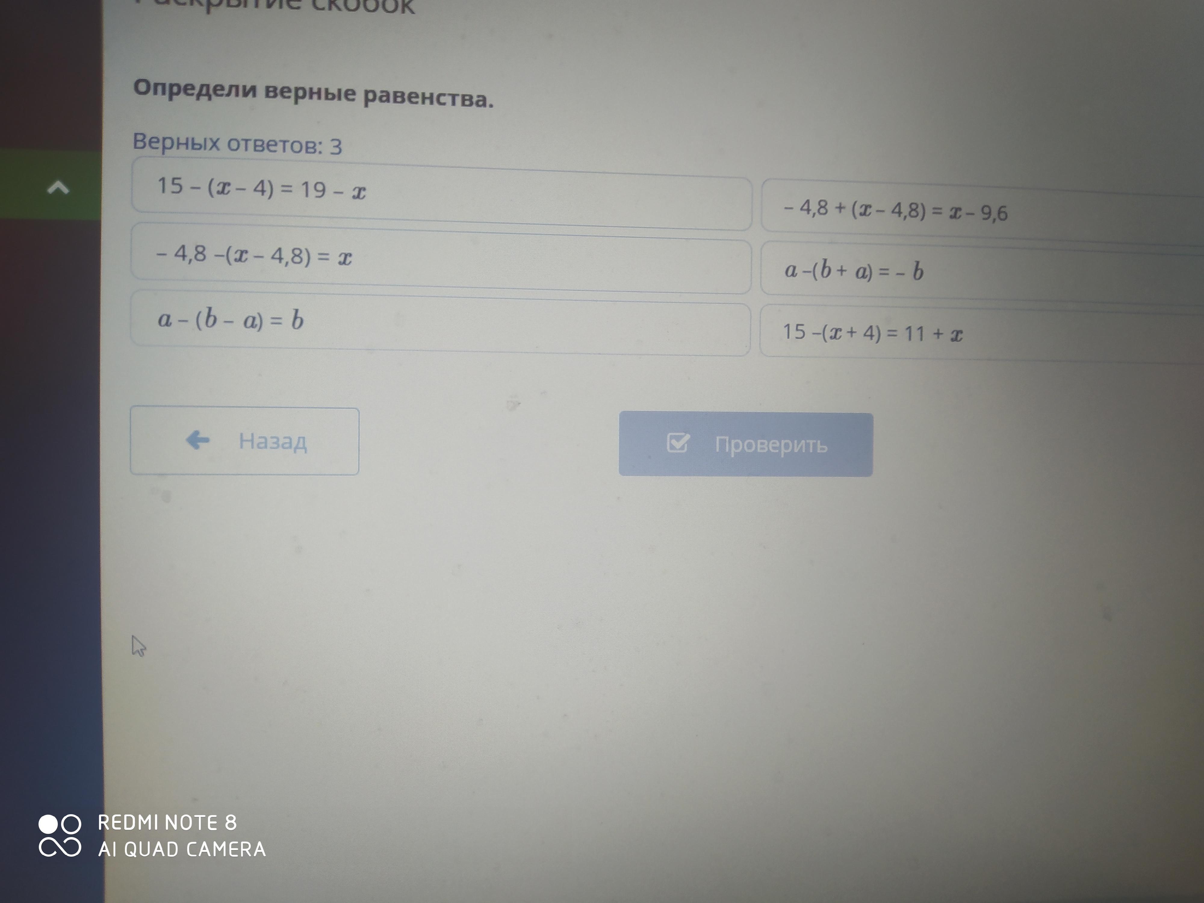 15 - (х - 4) = 15 - х + 4 = 19 - х;