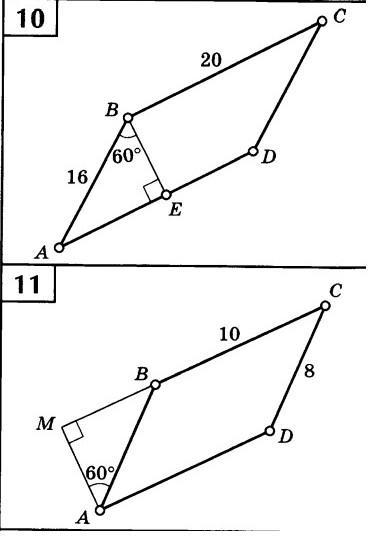 11. Тоже самое. <B=30° (180-90-60), значит MA=1/2 гипотенузы. Гипотенуза = BA, а BA=CD (по свойствам параллелограмма)
