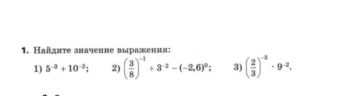 1)5⁻³+10⁻²=1/125+1/100=9/500=0.018