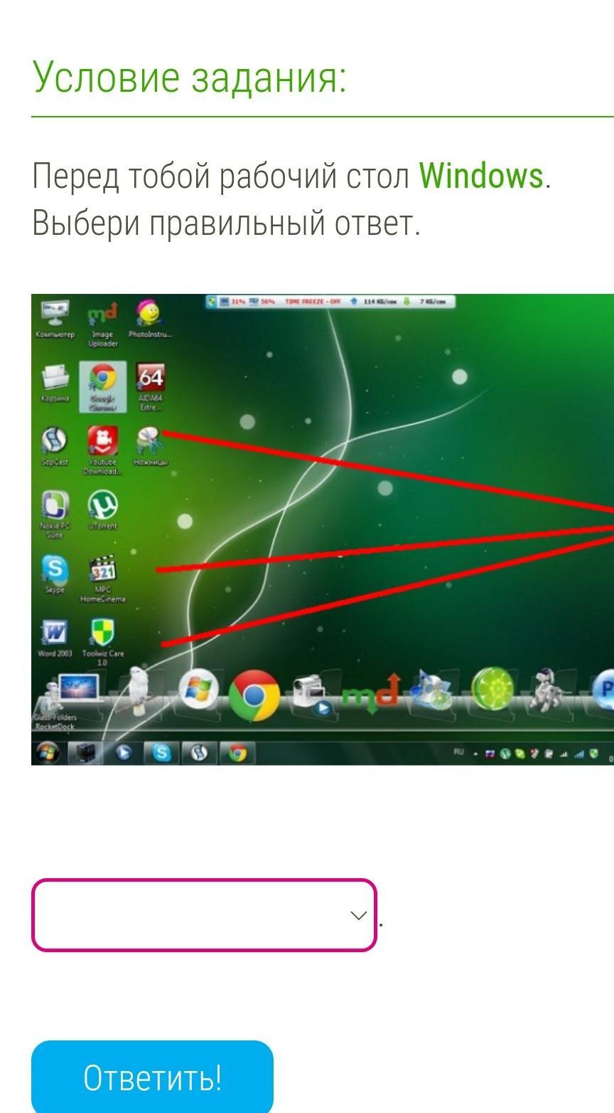 Перед тобой рабочий стол Windows.Выбери правильный ответ