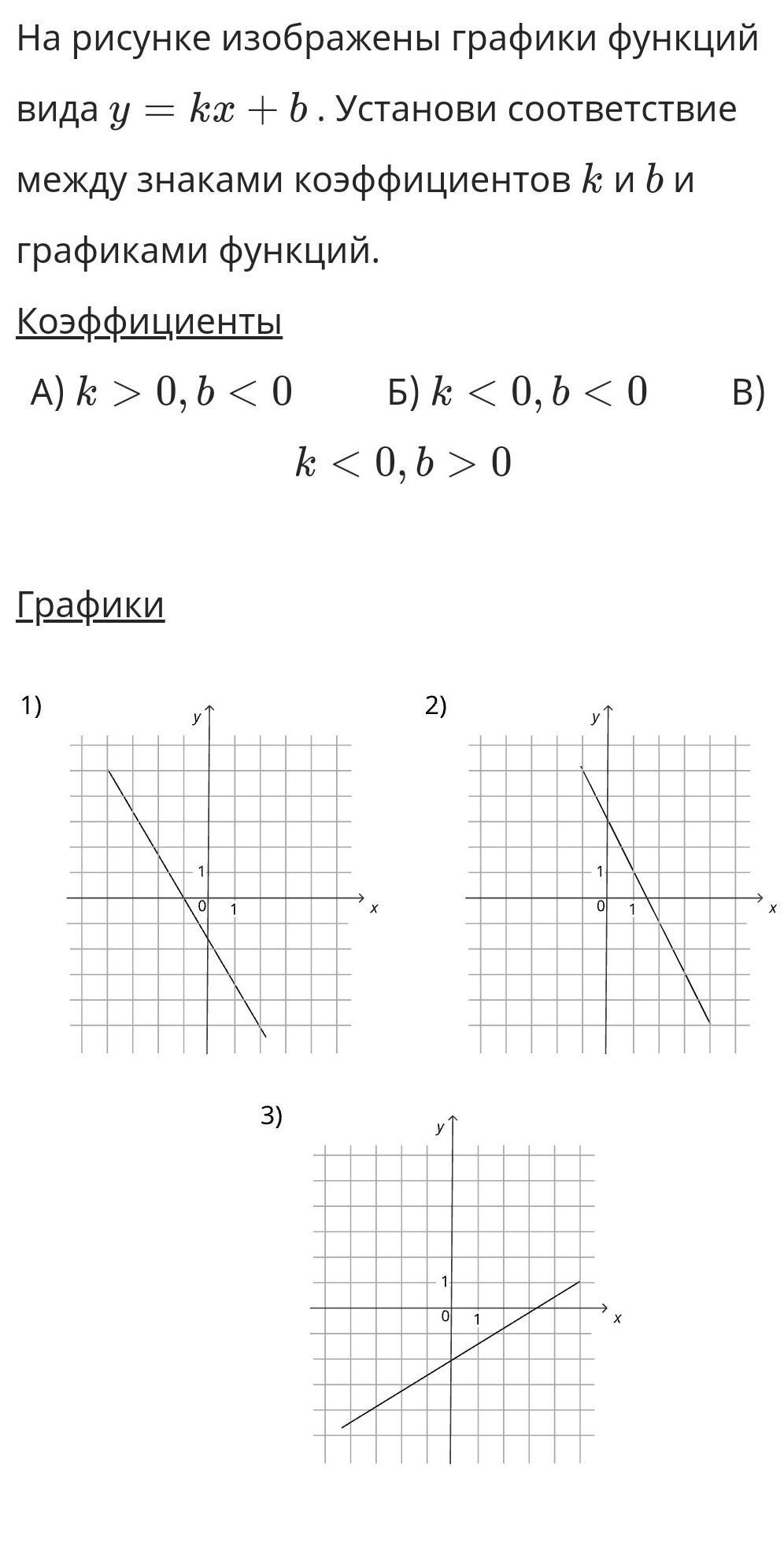 Коэффициент b показывает ординату точки пересечения графика с осью y: если b>0, то график пересекает ось y выше оси x (как на рисунке 2), если b<0, то график пересекает ось y ниже оси x (как на рисунке 1).